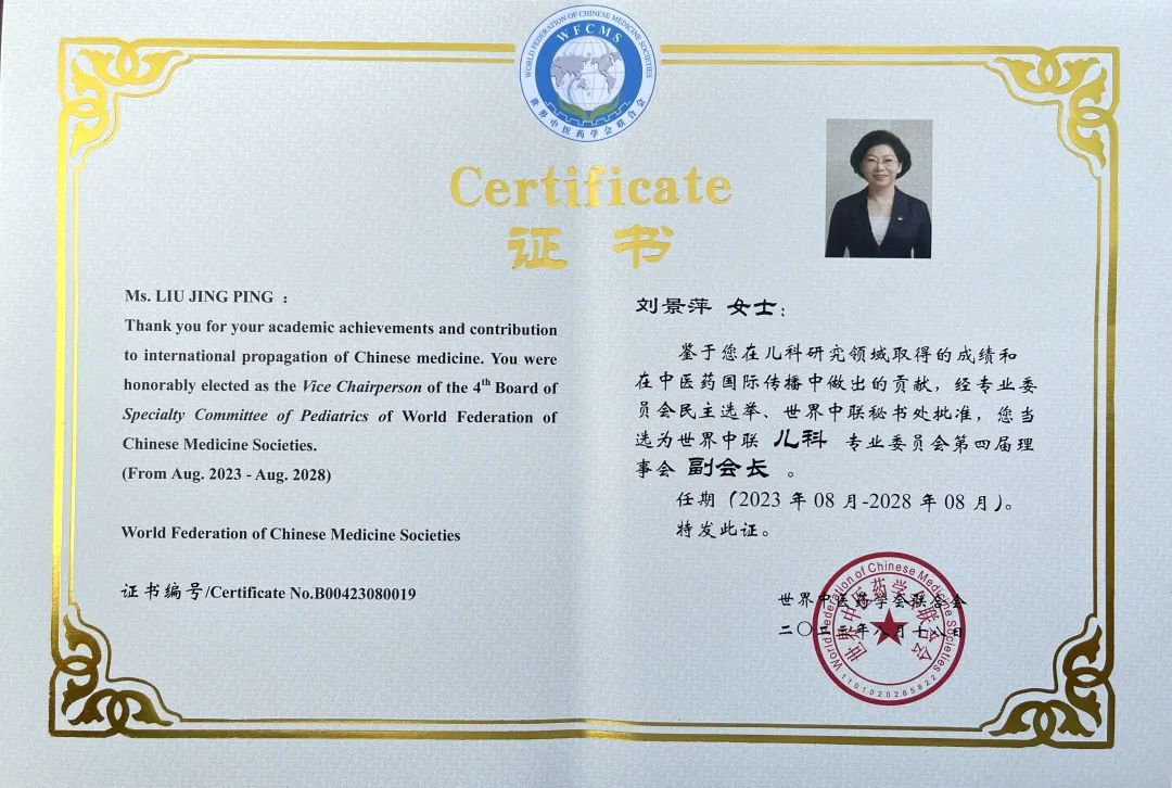 PA官方网站药业集团党委书记、董事长刘景萍当选世界中医药学会联合会儿科专业委员会第四届理事会副会长